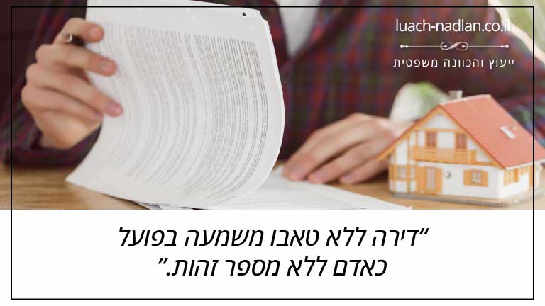 דירה ללא טאבו משמעה בפועל כאדם ללא מספר זהות. כפי שניתן לזהות כל אדם באשר הוא לפי תעודת הזהות שלו, כך ניתן לזהות כל דירה לפי נסח הטאבו שלה. מה צריך לזהות – למשל את פרטי הדירה, את גודלה, את בעליה, האם קיימות חריגות בניה, האם קיימים עיקולים או צווי הריסה, האם קיימים שעבודים או משכנתאות, או הערות אזהרה מגבילות אחרות.